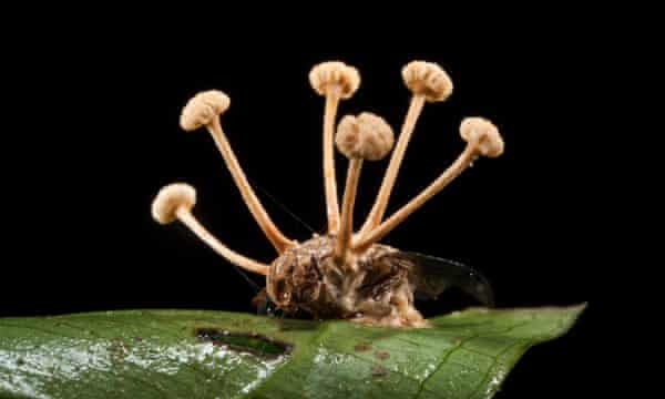 Fungo Cordyceps atacando uma mosca. Fotografia: Nature Picture Library/Alamy