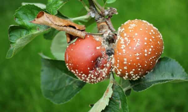Doença fúngica da podridão parda em maçãs. Fotografia: Sabena Jane Blackbird/Alamy