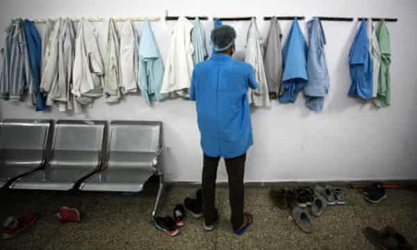 Um médico se prepara para realizar uma cirurgia em um paciente com mucormicose em Allahabad, na Índia. A mucormicose apresenta elevada prevalência no país. Fotografia: Ritesh Shukla/Getty Images