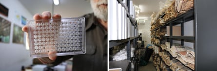 A former water buffalo shed is filled with carefully organised rows of plastic bags, each containing a caterpillar feasting on leaves from the nearby rainforest. Osvaldo, a former shark fisherman and field assistant to the couple for 30 years, is holding a hungry caterpillar hidden under a leaf. The insect will be carefully reared and ultimately sent to Canada for DNA barcoding analysis in Hebert’s lab once it has completed its life cycle.