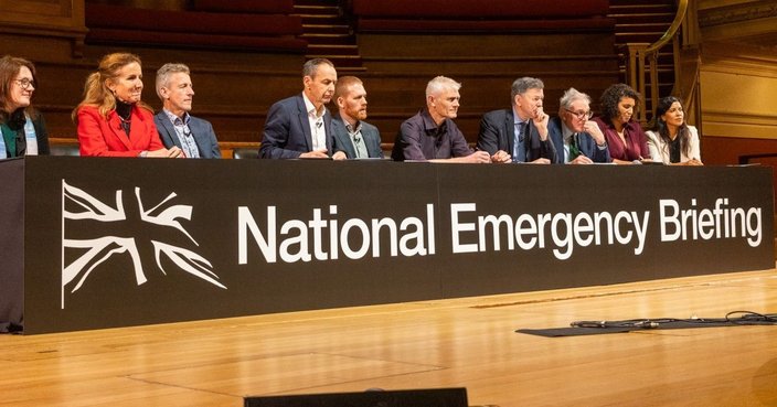 And without urgency, we will never mount the global response such a crisis demands. And while Asia drowned, something else happened in London This same week, the UK hosted the first-ever National Emergency Briefing at Westminster Central Hall — gathering more than a thousand politicians, business leaders, media figures, faith and community voices, all briefed by a panel of top scientists, health-, food- and security-experts.